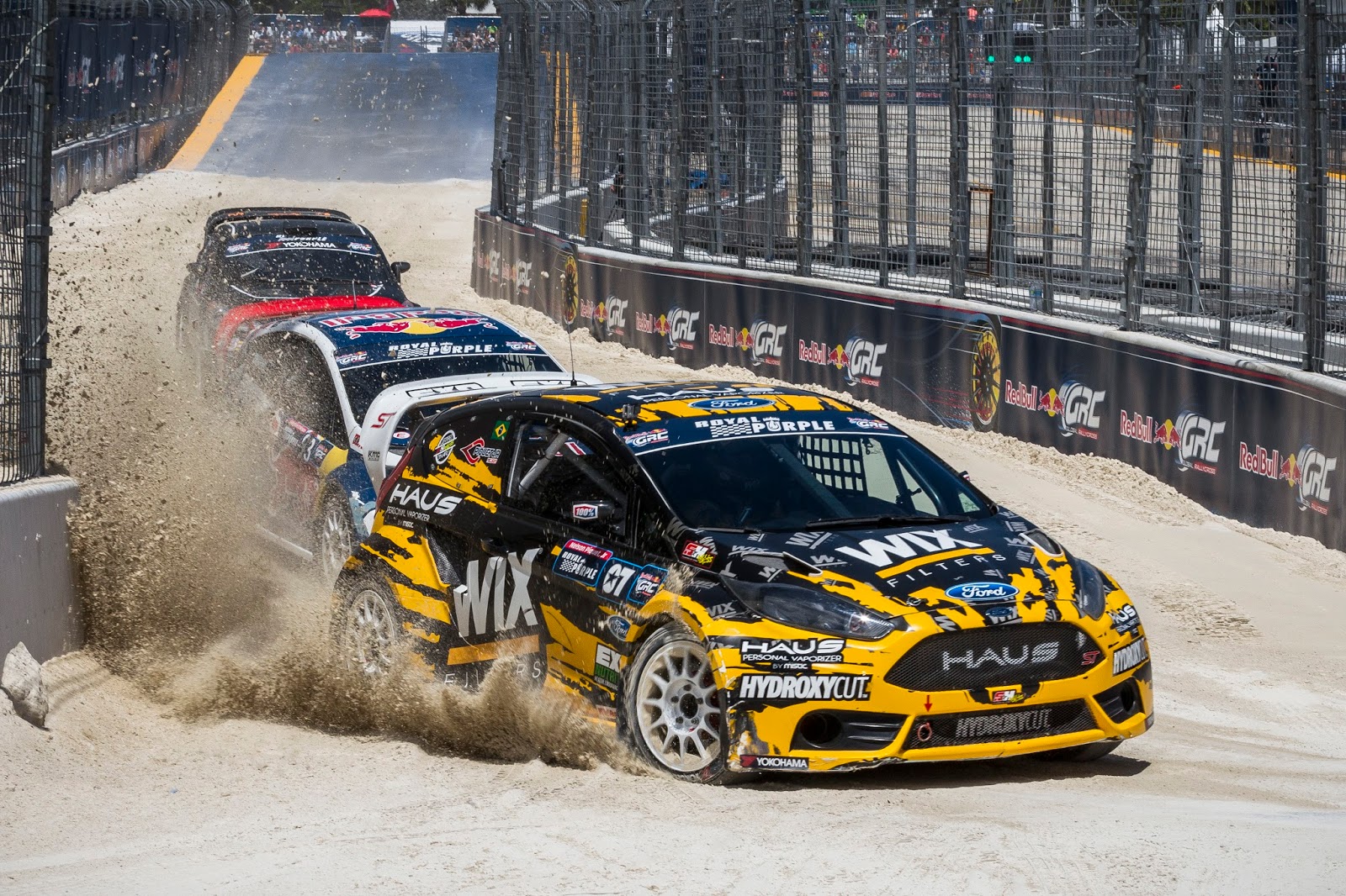 Block, who began the weekend in the barriers after a daring over manoeuvre on Scott Speed in his heat failed to pay off. He finished that race third, before taking second in the second round of heats. He then went on to win his semi final, equalling the Global Rallycross heat wins record.